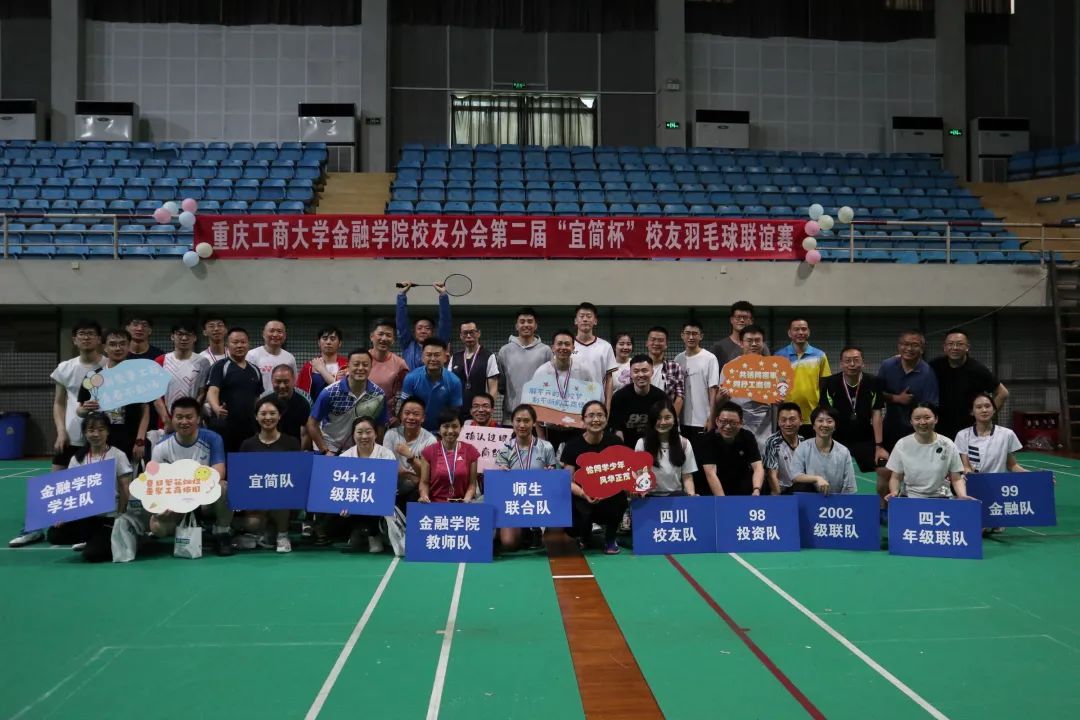 同一时间的体艺馆内,第二届“宜简杯”校友羽毛球联谊赛精彩纷呈。本次比赛有校友及jinnianhui今年会师生组建的10支队伍参赛。比赛现场气氛热烈,各队选手配合默契,展现出金融人奋发争先、团结拼搏的精神面貌。