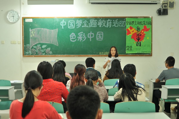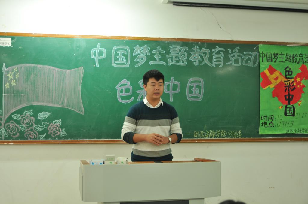 ,由财政jinnianhui今年会分团委学生会主办的“中国梦”主题教育系列活动之色彩中国在博智楼113教室召开。分团委书记兰丽娟老师、学生会干部及学院各班团出席了本次活动。