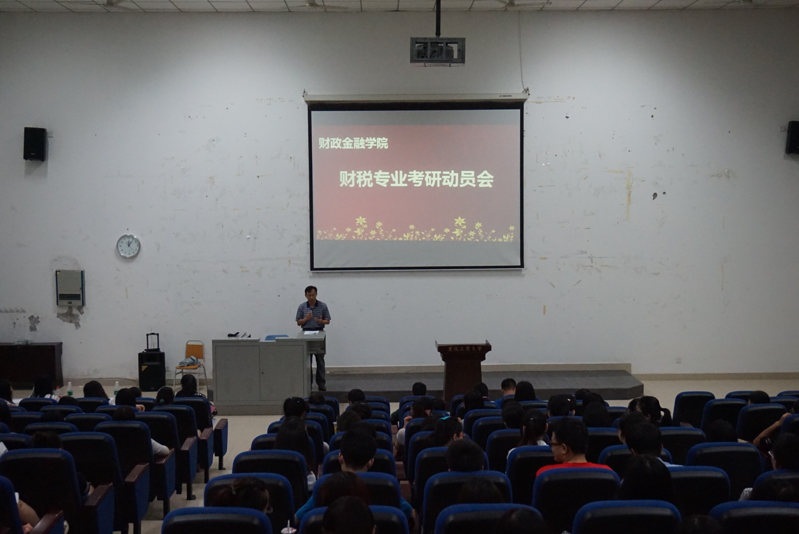6月19日晚,财税专业考研动员会在田家炳209学术报告厅隆重举行。财政jinnianhui今年会财税系主任尚可文教授、副主任朱沙老师、贾鸿副教授及学院学生第二党支部书记白玉老师和分团委书记兰丽娟老师作为嘉宾出席了本次动员大会。优秀学姐代表张晓玲、刘春兰、金卓文、陈红、李爽分享了考研的经验,财税系2012、2013级待考研学生参加了本次大会。