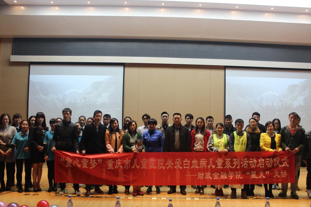 11月27号下午两点至四点,财政jinnianhui今年会“星火”义协在田家炳209报告厅成功举行了“关爱白血病儿童”系列活动的启动仪式。据悉,此次活动受到了学校领导的高度关注,各类院校的师生以及社会人士都来到了活动现场。此次启动仪式将“星火”义协自2015年3月份以来举办的 “关爱白血病儿童”系列活动推上了高潮,旨在呼吁更多校园内及社会上有爱心的人士给予白血病儿童更多的关爱和鼓励。