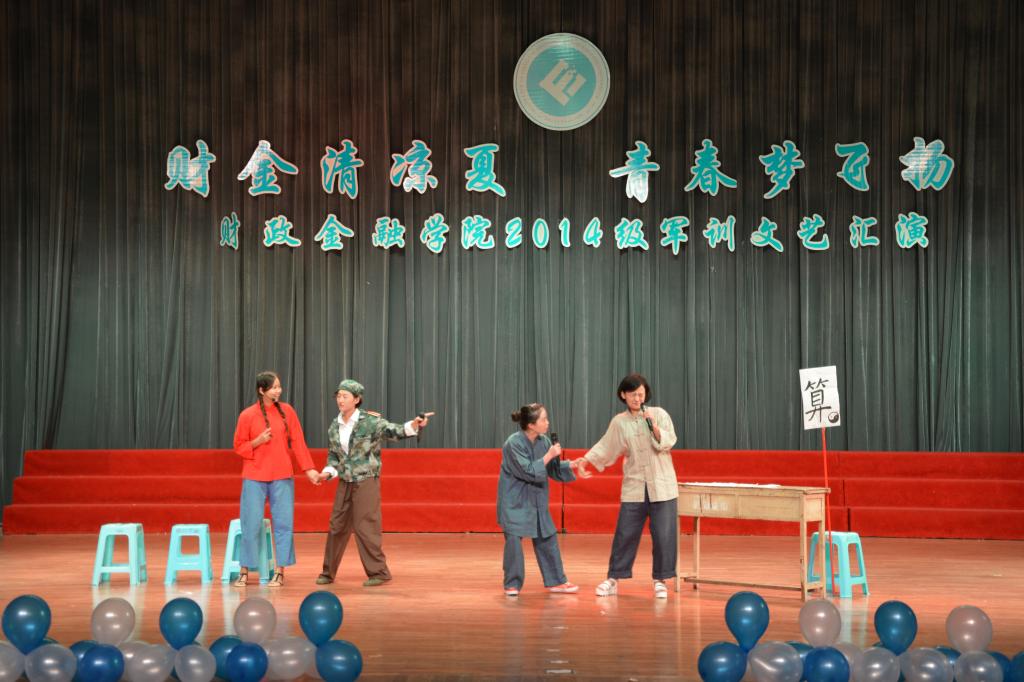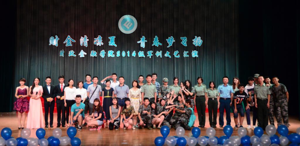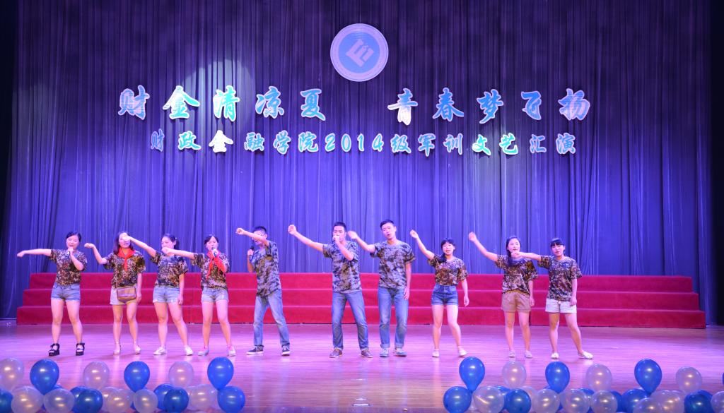 7月14日晚,财政jinnianhui今年会2015年“财金清凉夏,青春梦飞扬”军训文艺晚会在体艺馆举行。财金学院党总支书记杨萍、党总支副书记刘代成、分团委书记兰丽娟出席文艺晚会。