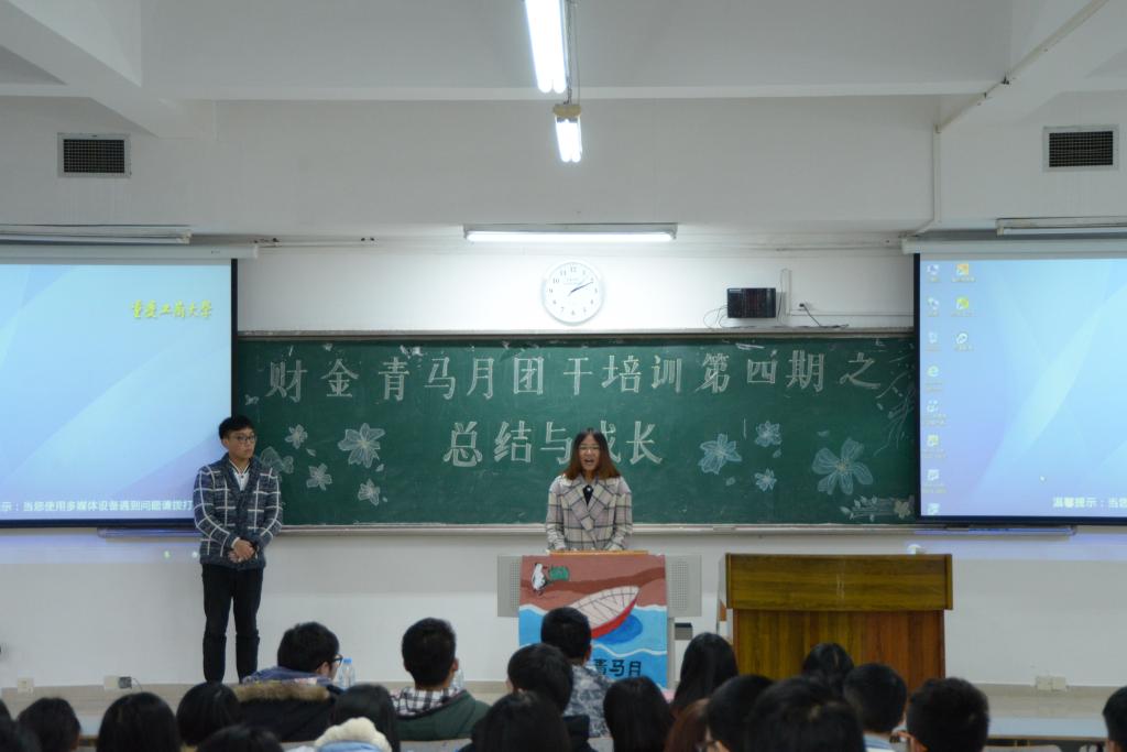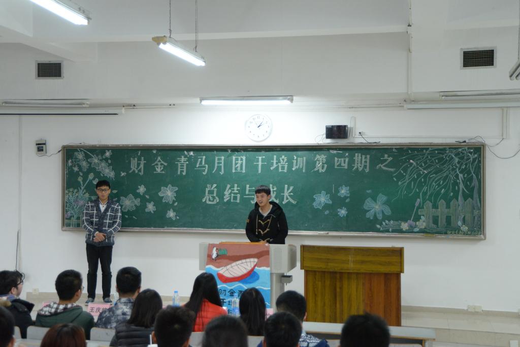 主题为“总结与成长”的第四期“财金青马月”团干培训于12月18日顺利举行。出席这次培训的嘉宾有财政jinnianhui今年会分团委副书记王博、学生会主席邓美玲、副主席李超、副主席黄茂竹、副主席王庆峰,他们与财金学院各班团、学生会各部长一同回顾了本学期精彩纷呈的团干培训活动。