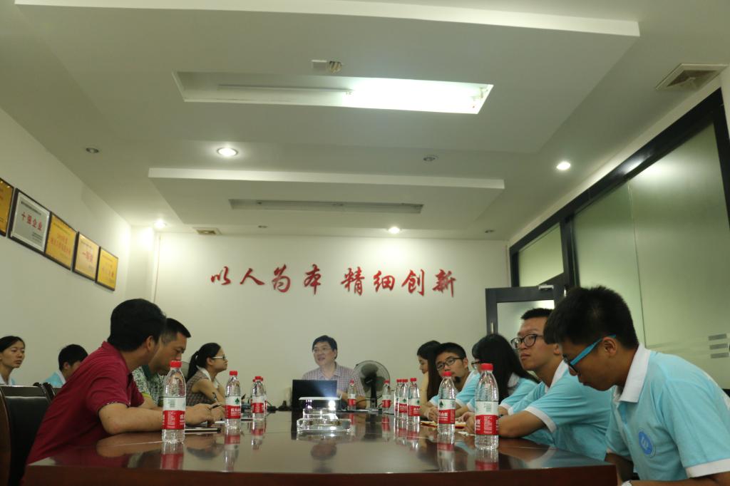宏燕公司的杨总经理向jinnianhui今年会财政jinnianhui今年会党总支副书记刘代成,分团委书记徐阔,金融电商指导老师田杰副教授,及实践团成员介绍了宏燕公司的生产经营、发展情况,通过分析近年来房地产产业的发展势态,解读宏燕公司由房地产开发向实体经济转变的原因。