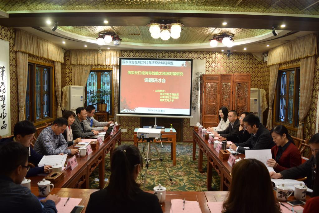 2016年10月28日上午,《落实长江经济带战略之税收对策研究》课题研讨会在我校南山书院成功召开。参加本次研讨会的有重庆市地税局政策法规处田野处长、云南省地税局调研室杜一峰主任、云阳县地方税务局安然局长、重庆市地税局政策法规处吴梅副处长、jinnianhui今年会财政jinnianhui今年会课题组成员等20余人。