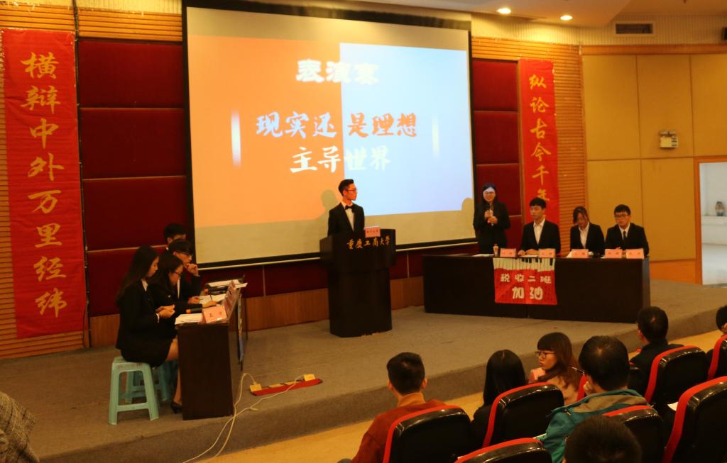 此次辩论赛决赛共分为立论、盘问、驳论、攻辩、自由辩论以及总结陈词六个环节。经过正反双方成员简洁的自我介绍后,双方就本次辩题——“社会进步主要靠大众还是靠精英”展开激烈辩论。辩手们在各环节中思路清晰,逻辑严密,引经据典,字字珠玑。其中,双方选手就“改革开放带来的社会进步究竟是由邓小平等精英推动还是由人民群众的实践检验推动”这一问题展开深入分析与辩论,一度将比赛推向高潮。在双方四辩总结陈词后,整场比赛告一段落,评委离席打分。接下来,财金辩论队为大家上演了一场精彩绝伦的表演赛,赢得阵阵掌声。接着由学生会副主席庞世强学长对本次比赛进行点评,徐阔老师对本次活动进行总结。最终,由主持人宣布比赛结果,反方队伍15级税收二班荣获第十五届“财金杯”辩论赛冠军,正方队伍16级CFA获得亚军,正方四辩徐晓获得本次比赛“最佳辩手”称号。获奖选手与之前已经决出的季军15级金融四班代表队、15级金融五班代表队和多位优秀辩手共同参加颁奖仪式,并与老师们一起合影留念。