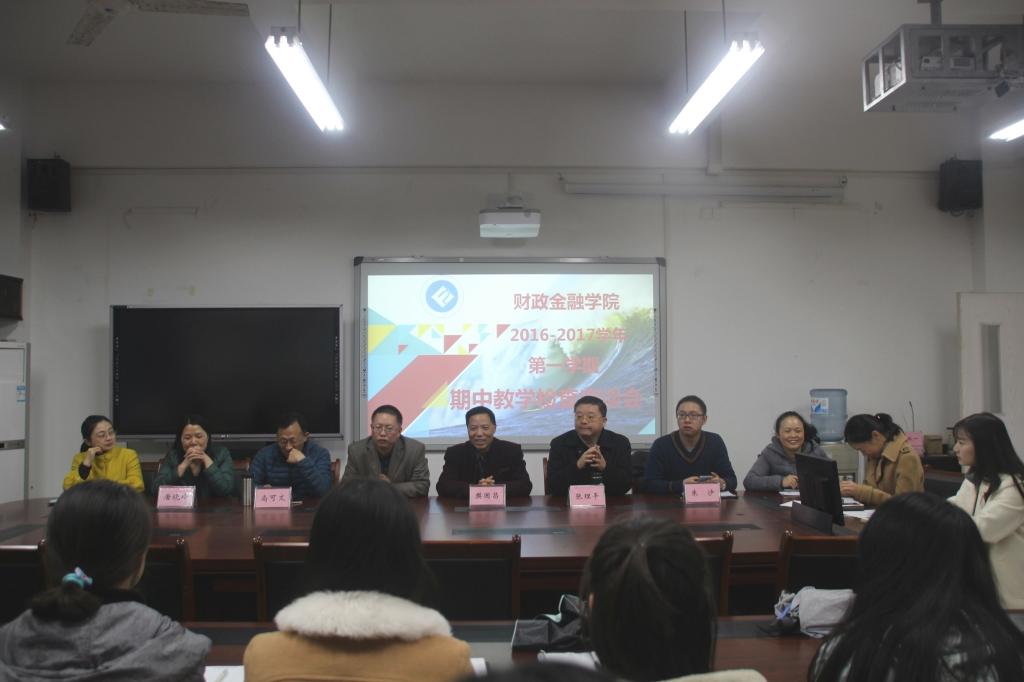 2016年11月23日中午,于田家炳313会议室召开了财政jinnianhui今年会2016-2017学年第一学期期中教学检查座谈会。财政jinnianhui今年会常务副院长莫云教授,校督导专家樊国昌教授、尚可文教授和院督导专家张理平老师、唐晓玲老师、周渊老师、朱沙老师及学院相关负责老师与各班级学习委员共同对学院上半学期教学工作做了座谈及工作总结。