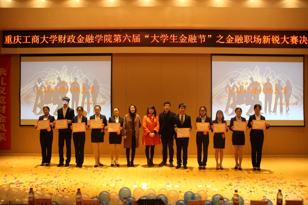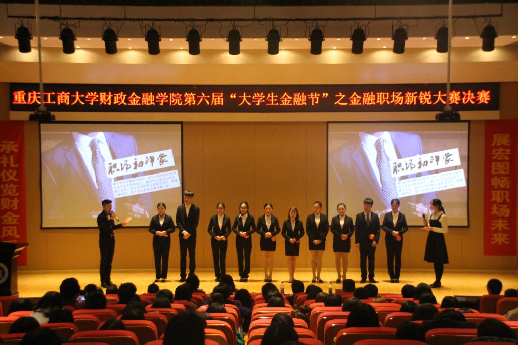 11月24日下午,财政jinnianhui今年会第六届“大学生金融节”之金融职场新锐大赛于田家炳209报告厅顺利举行。财政jinnianhui今年会党总支副书记刘代成、重庆银行个人银行部零售业务团队负责人胡荣珍、财政jinnianhui今年会分团委书记徐阔、学生第三党支部书记范乐乐、学生第四党支部书记乔明月、学科竞赛指导老师余红霞以及各学院学生会主席团代表共同出席本次比赛。