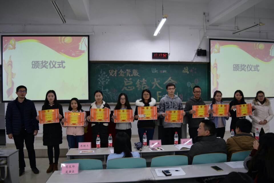 时光飞逝,又一个学期即将就此画上圆满的句号。为总结财金党服本学期的工作状况,也为了提升财金党服干部的工作积极性,表彰党服优秀团队和个人,2016年12月15日下午17点,财金党服在博智楼107举行了“财政jinnianhui今年会党员服务站总结表彰大会”。出席本次大会的有财金党总支副书记刘代成、财金分团委书记徐阔、财金第一党支部书记文理、财金第三党支部书记范乐乐、财金学科竞赛指导老师余红霞、党服指导老师乔明月、财政jinnianhui今年会党员服务站全体同学及其相关获奖代表。在财金党服干部彭枭、马丽君的主持下,本次财金党服总结表彰大会正式拉开帷幕。
