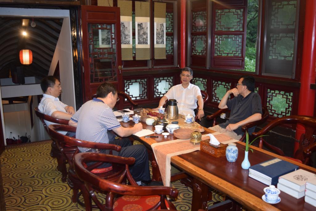 6月25日上午,南山书院语仙阁,学校副校长陈云超教授同西南大学校长助理周光明教授,以及周助理引荐来的华尔街资深操盘手、美国耶鲁大学博士吕秋强教授座谈。学院院长刁孝华教授、副院长曾胜教授出席。