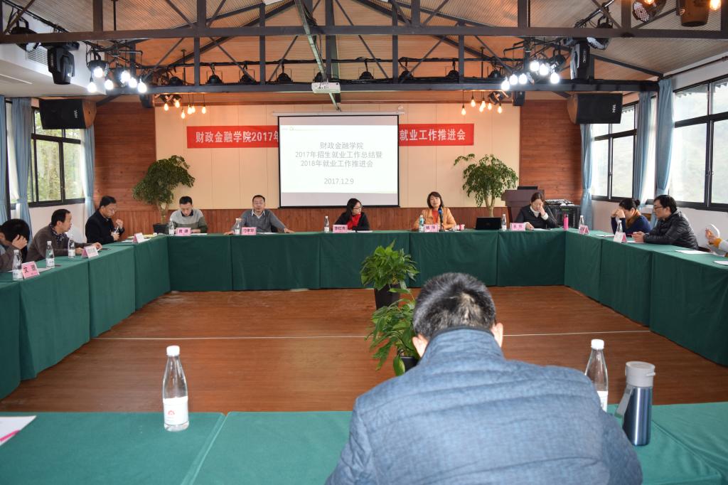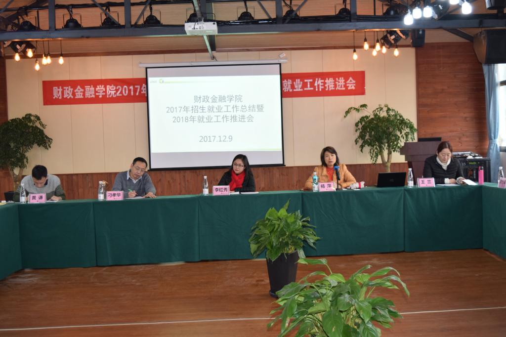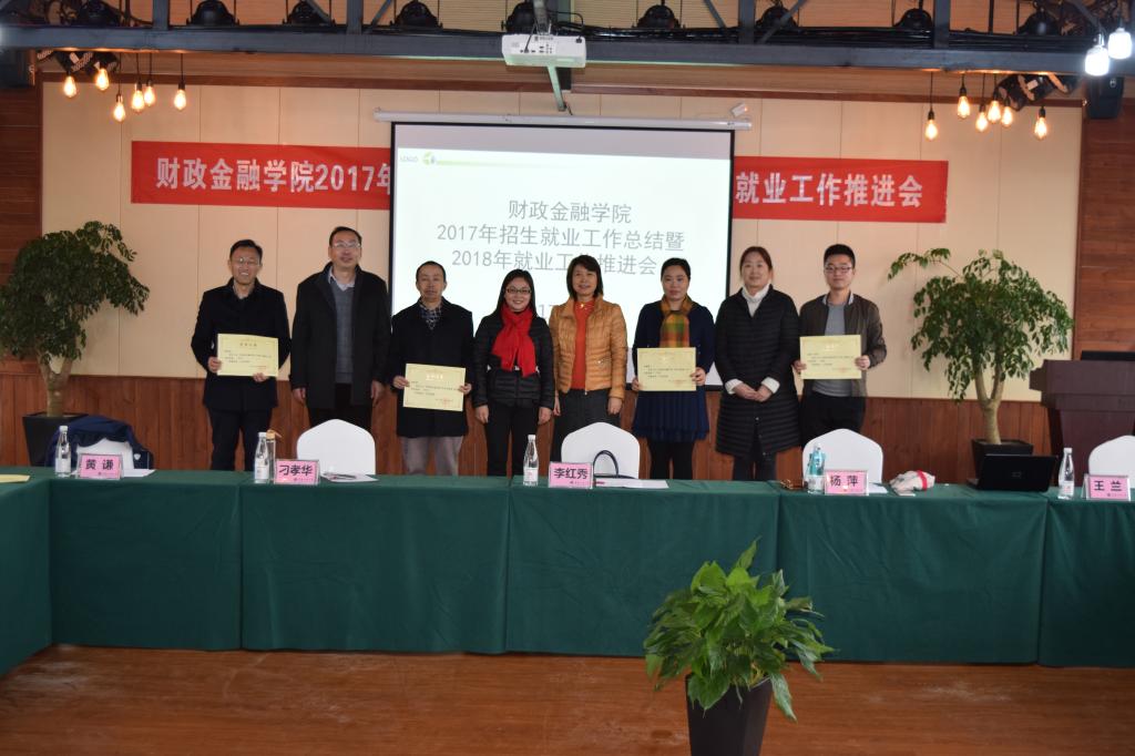 学院党政领导、各系主任、毕业班辅导员及教师代表参加了此次会议,会议议程共有八项。一是主持人黄谦副书记介绍了来自保险业、银行业的参会嘉宾;二是杨萍书记及兰丽娟老师代表学院总结了2017年就业业工作;三是表彰2017届毕业生工作先进集体和个人。根据财金学院【2015】02号文件精神及2017年6月14日学院党政联席会议纪要,经过学院学团办初次评选和学院毕业生就业工作领导小组联评,12月6日,学院党政联席会和院务会集体商议,决定授予财税系等4个系为“财政jinnianhui今年会毕业生就业工作先进集体”;授予白玉等9位同志为“财政jinnianhui今年会毕业生就业工作先进个人”。四是系主任代表尚可文教授发言。他提出要做好学生的就业工作,首先要以需求为导向优化人才培养方案,其次要注重考研动员及全方位辅导,第三要充分利用校友资源拓展就业渠道,第四要鼓励帮助学生参加各种学科专业比赛;五是毕业班辅导员代表文理老师发言。他分享了自己三届毕业生的代班经验,也发表了几点学生就业工作的思考。六是嘉宾代表发言。中国人保渝北支公司副总经理李红秀女士分享了自身的职业成长经历,并从用人单位的角度分析了大学生就业存在的问题。七是自由发言交流。保险系主任谭湘渝、金融系主任许世琴等参会老师都从各自系的实际状况发表了自己的观点和看法。八是刁孝华院长总结发言。刁院长指出,要做好大学生的就业工作需要政府、学校和社会三方共同努力。现代社会,科技进步迅速,社会环境变化较大,人们的思想观念也在发生转变,大学生就业工作需要不断创新和优化,各专业需要不断调整优化培养方案,大力鼓励和支持学生参加专业学科竞赛,提高学生综合能力和素质,加强学生人生(职业)规划教育。辅导员队伍人员要充足,逐步实现带班专业固定,从而更有利于协同配合,做好学生管理工作。