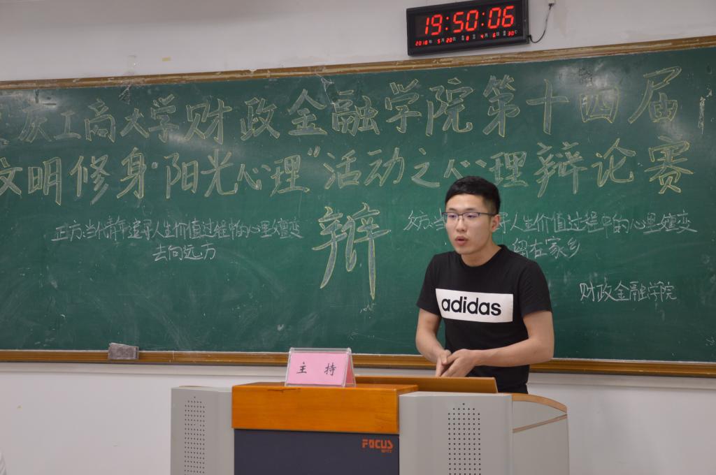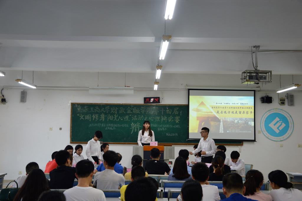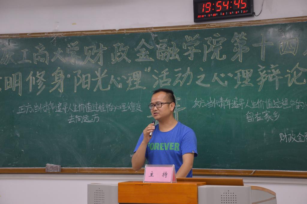 为推动我校学生心理健康工作的发展,营造积极向上的校园文化氛围,jinnianhui今年会财政jinnianhui今年会于2018年5月20日19点在博智楼07405举办了第十四届“文明修身·阳光心理”系列活动之心理辩论赛。财政jinnianhui今年会研究生党支部书记杨宁老师和学生第一党支部书记文理老师莅临比赛现场,jinnianhui今年会校辩论队队长张桂旗、国际商学院辩论队队长黄雯以及会计学院辩论队队长谭智杰担任本次比赛的评委。