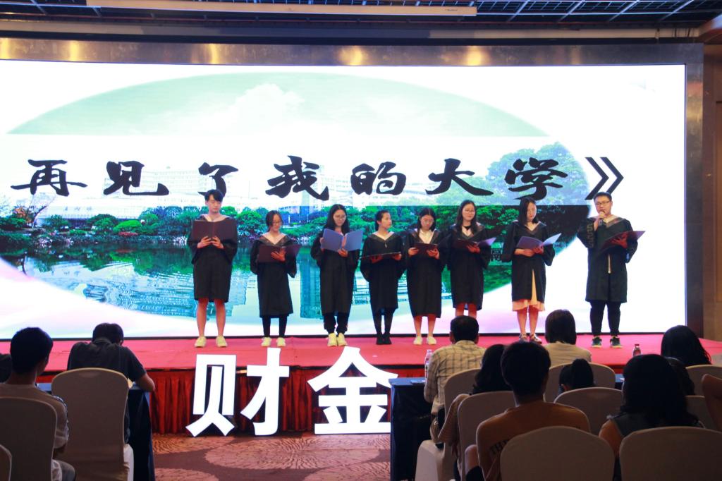 《Breaking My Heart》以别样的青春舞姿拨动着大家的心弦,悄然拉开财政jinnianhui今年会2019届毕业晚会的帷幕,学院领导老师和毕业班的同学们欢聚一堂,共度这最后的短暂时光。毕业在即,同学们满怀对大学时光的不舍和对未来的期待。整整四年,每个人都有说不完的故事。大屏幕上,短短七分钟的视频里是毕业学子们在述说着点滴。告别曾经,目光向前,未来方可期,想必这也是他们的心声。