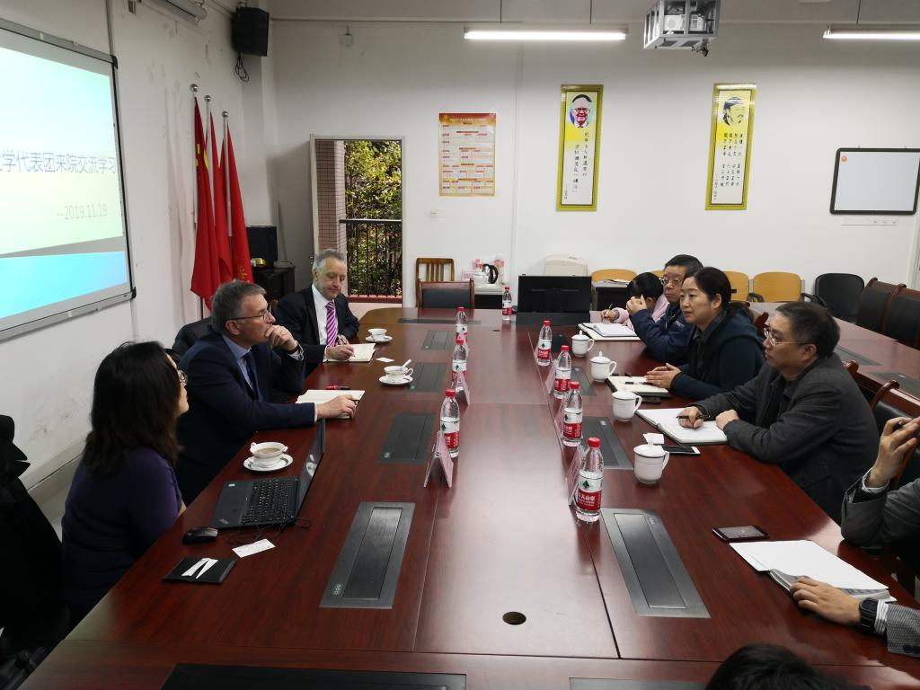 2019年11月19日,布鲁尔大学代表团Tomas一行来今年会官网交流学习,今年会官网负责本科教学工作院长王兰教授在田家炳书院313室接待,双方洽谈关于教学合作相关事宜。