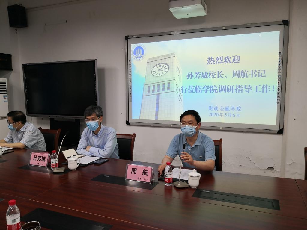 5月6日上午,校长孙芳城、校纪委书记周航一行到财政jinnianhui今年会调研指导学科建设和疫情防控工作,并在田家炳313会议室召开调研座谈会。教务处处长靳俊喜,研究生院院长田双全,以及学院领导、各系主任、财税系全体教师和部分辅导员参加了会议。