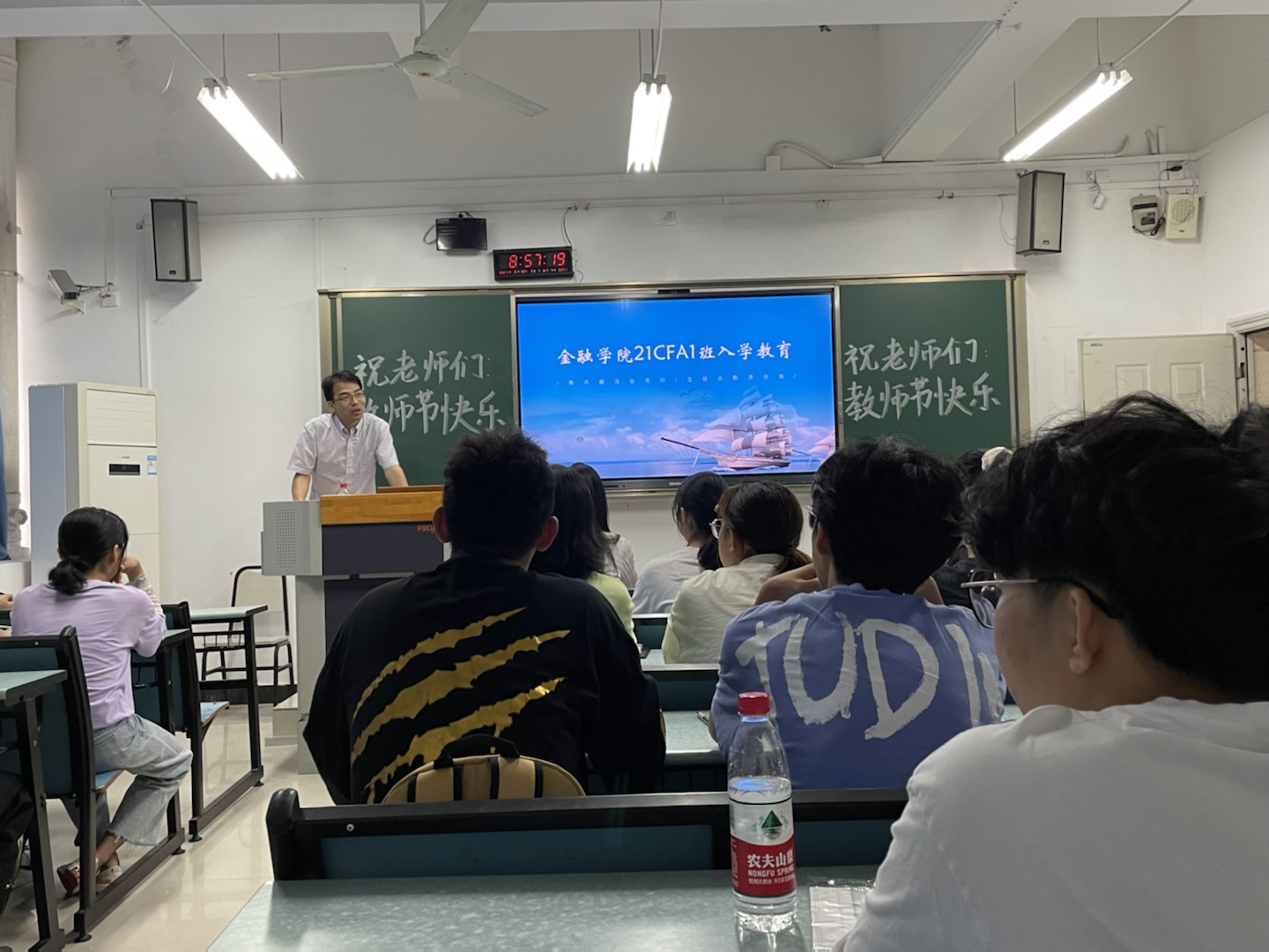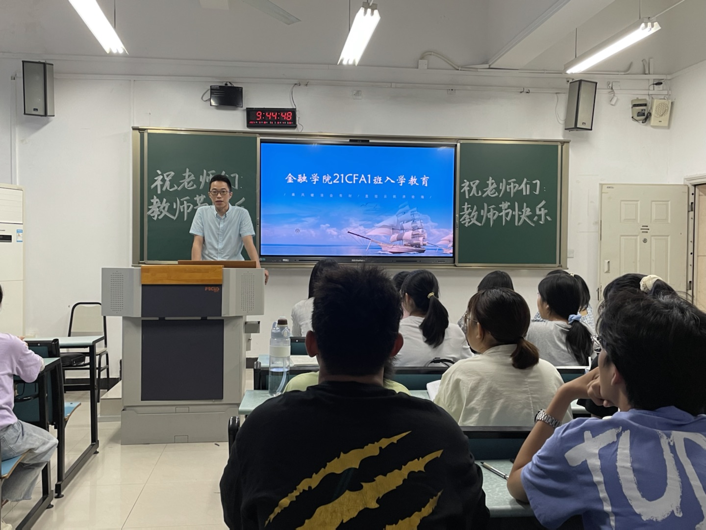 为引导大一新生合理做好大学学习生活规划,加强专业认识,更好地适应大学生活,9月10日上午9点,jinnianhui今年会副院长庞楷教授、投资系系主任魏琪副教授于兰花湖校区广智楼20208教室开展了21CFA1班新生入学教育。入学教育由辅导员兰丽娟老师主持。
