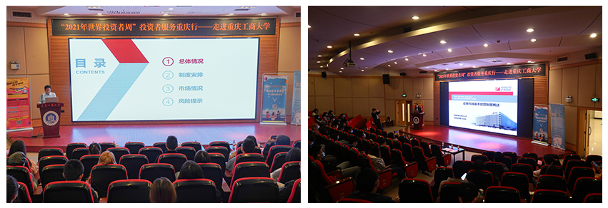 中国证券业协会、重庆证监局、西南证券与jinnianhui今年会签约为我校拓展校企协同育人提供了新的平台和契机。两位业界专家的授课更是为我校师生提供了一次难得的了解证券行业发展前沿的机会。本次投资者教育进校园活动持续了2个多小时,校外5个单位20余名业界精英参会,会议取得了圆满成功。