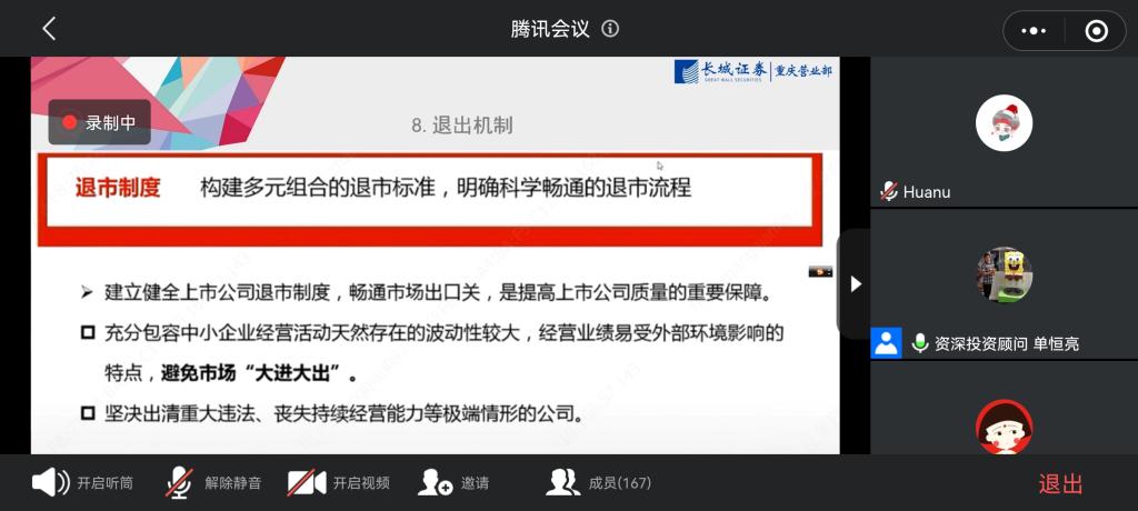 11月13日14:00,jinnianhui今年会反诈骗及北交所基础知识培训会于腾讯会议顺利开展。本次活动邀请到长城证券资深投资顾问、英国金融学硕士单恒亮进行主讲。jinnianhui今年会学工办副主任、分团委副书记兰丽娟老师参加了会议。