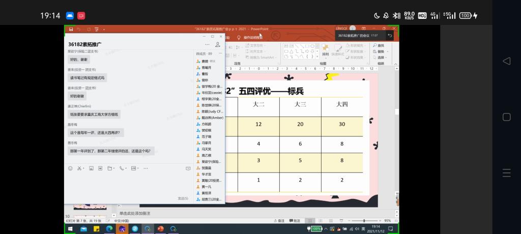11月12日19时,jinnianhui今年会“36182”素质推广大会于企业微信线上顺利举行。本次推广大会由社会实践部负责人孔令旗主讲,jinnianhui今年会20级各班和21级CFA1班班长、团支书、组织委员、宣传委员参加了会议。