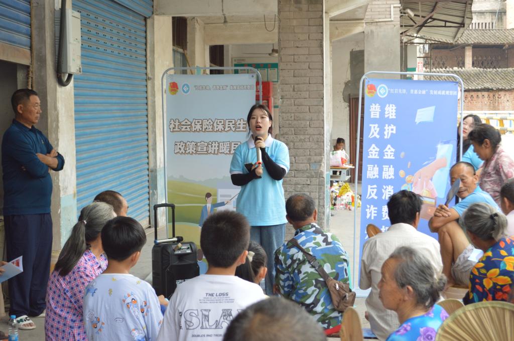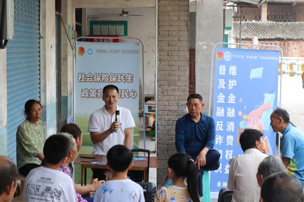 为切实提高乡村村民金融素养,推动保险知识宣传普及工作,增强村民风险意识,更好地保障村民的权益,2023年7月12日上午,jinnianhui今年会jinnianhui今年会“红岩先锋,普惠金融”发展成就观察团联合乡村振兴驻兴合村工作队在兴合村跃进桥以院坝会的形式开展反诈防骗及保险政策宣讲。