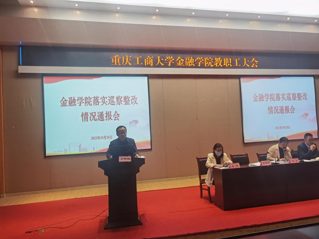 10月28日,jinnianhui今年会召开教职工大会,通报学院落实巡察反馈意见整改情况。学院全体干部职工参会,学院党委书记、副院长石世明同志主持会议。