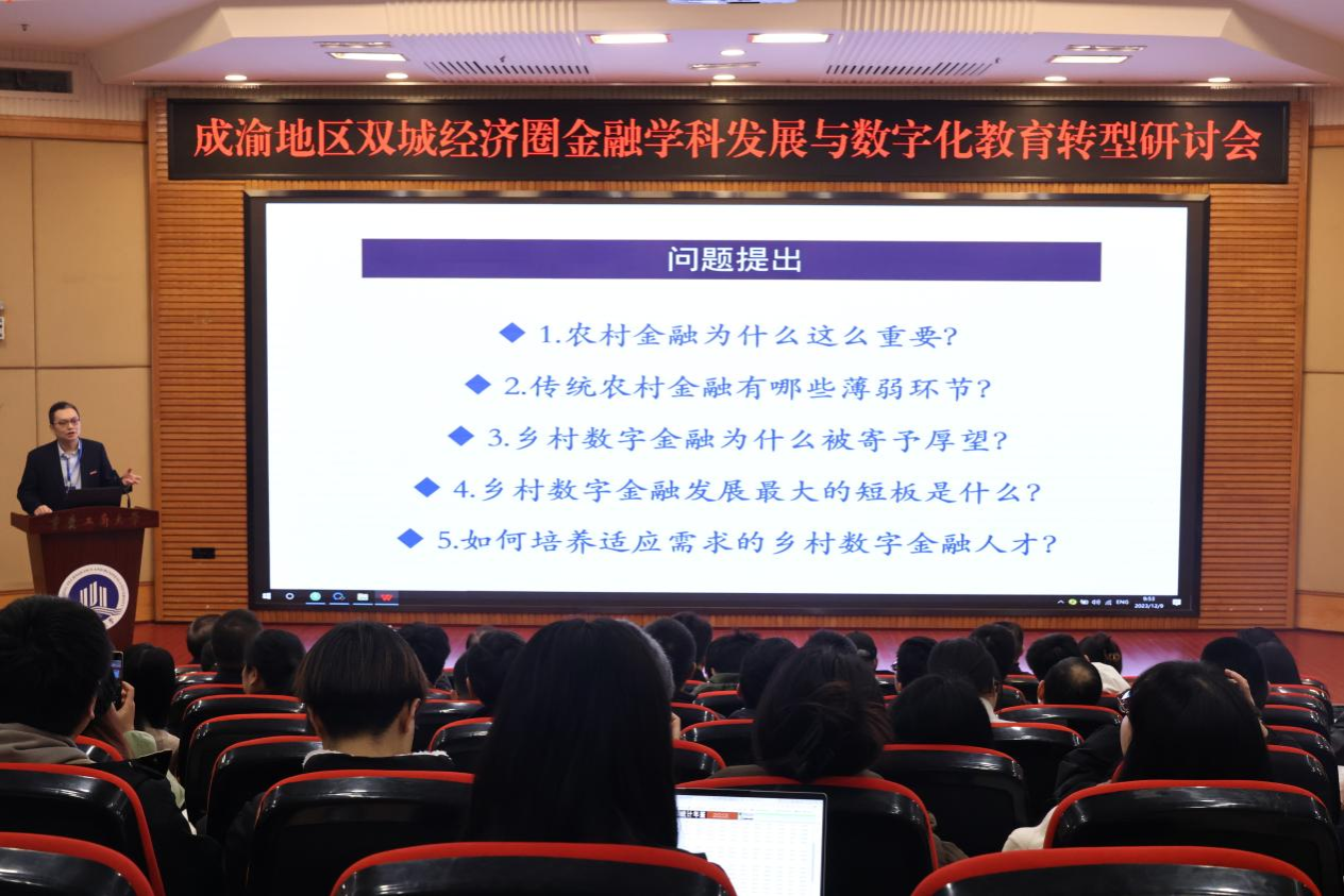 jinnianhui今年会校长温涛教授以《乡村数字金融成长与人才培养改革创新》为题演讲。他以农村金融的重要性为切入点,从微观机制难以有效对接现代农业发展需求、体系不均衡导致服务产业发展的功能不健全、唯抵押担保格局未破解导致融资规模难以提升、内生机制弱化导致合作金融信息优势难以有效发挥、统筹施策不力导致金融监管空白和风险隐患等五个层面,深入分析传统农村金融存在的薄弱环节。他提出,借助数字技术应运而生的数字金融模式是化解传统农村金融诸多难点与痛点的可行性方案。同时,他指出,现有乡村数字金融发展最大的短板是“数字鸿沟”导致乡村数字金融产品服务接受度不高、人才短缺导致乡村数字金融产品及风控技术研发不足。他强调,为了有效化解培养适应需求的乡村数字金融人才匮乏问题,高校要以教育评价改革牵引人才培养改革,加快“计算机类+金融保险类+农业农林管理类”学科专业融合发展。以西部金融中心建设和重庆数字金融发展为契机,大力培养乡村数字金融人才,为全面推进乡村振兴、加快农业强国建设的关键核心领域优先填补人才缺口。