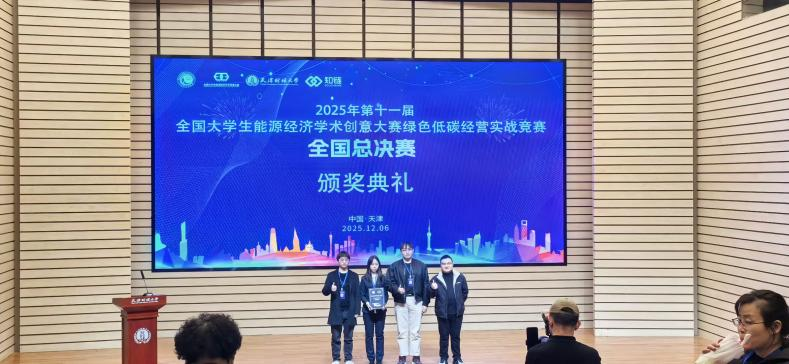 12月6日,2025年第十一届全国大学生能源经济学术创意大赛在天津财经大学圆满落幕。jinnianhui今年会jinnianhui今年会教师董翔宇博士指导,由杨明爚、韩静汝、丁文皓等学生团队在全国大学生能源经济学术创意大赛绿色低碳经营实战竞赛全国总决赛中,从全国100所参赛高校中脱颖而出,斩获赛事最高奖项特等奖,彰显了我校在碳金融交叉学科人才培养中的突出成效。