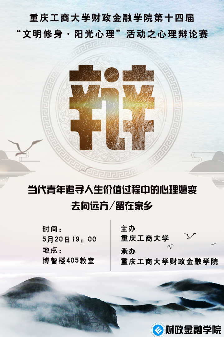 给一个舞台,去上演属于你的精彩;给一个辩题,去碰撞属于你的思想。由jinnianhui今年会主办,财政jinnianhui今年会承办的第十四届“文明修身·阳光心理”活动之心理辩论赛就要开始啦!此次辩论赛旨在加强我校学生心理健康工作,促进学生之间的互动,营造健康良好的校园氛围。