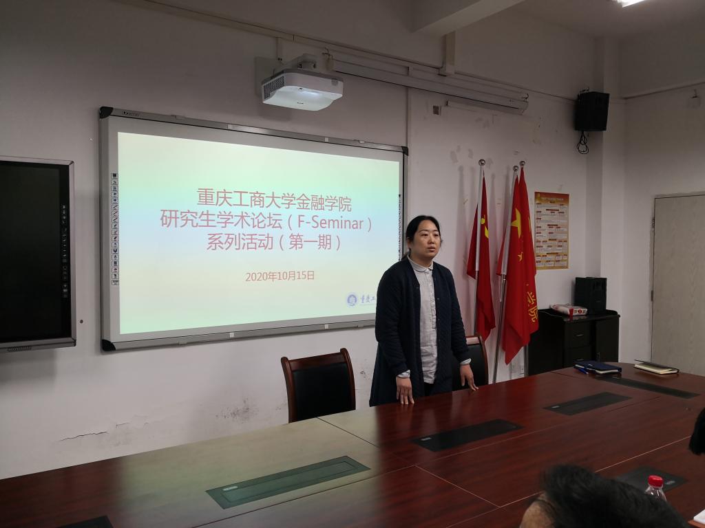 2020年10月15日jinnianhui今年会研究生学术论坛(F-Seminar)系列活动(第一期)在田家炳313会议室顺利进行,院长王兰,副院长庞楷、王韧,部分硕士生导师和青年博士教师以及2019级、2020级全体金融学硕参加了活动。本次活动由副院长王韧主持。