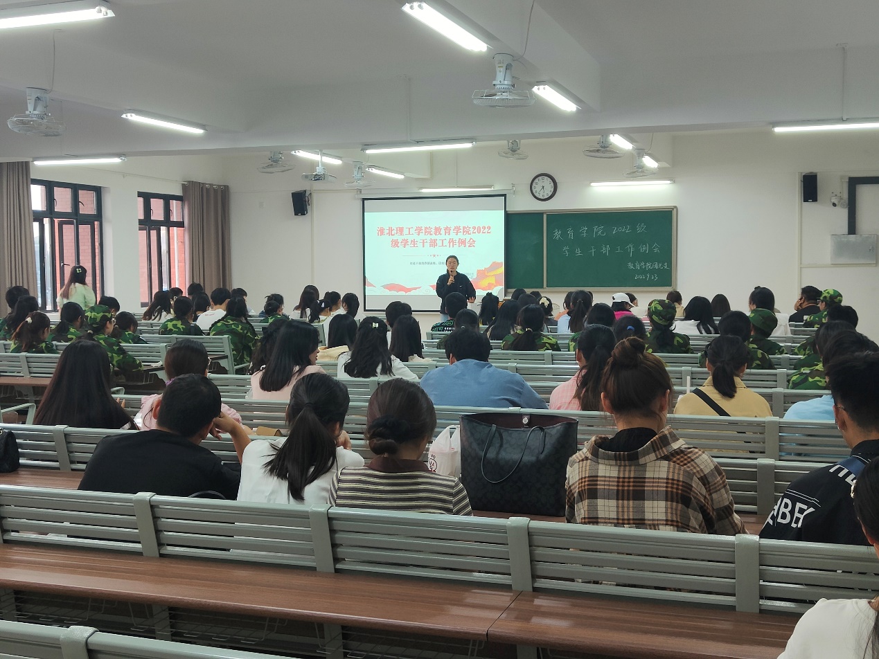 为顺利完成2022级新生入学后各项转接工作,9月23日下午,永利集团88304官网集团在1号教学楼420教室召开2022级学生干部工作例会,学院2022级全体辅导员、2022级49个班级班长、团支书参加了例会,会议由团总支负责人黄莹莹主持。