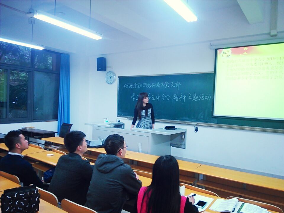 11月16日下午16点,财政jinnianhui今年会研究生党支部在田家炳50311召开了学习党的十八届五中全会精神主题活动。