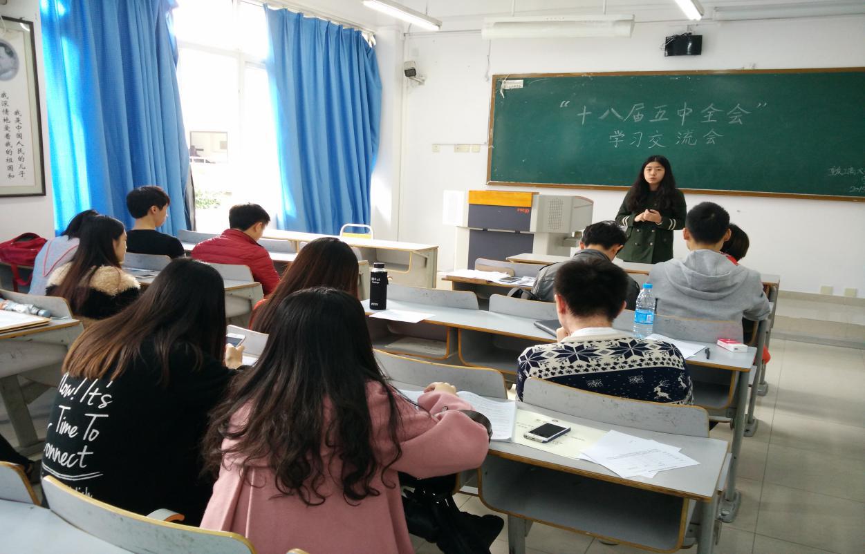 在支部书记范乐乐老师的主持下,全体人员开展2015-2016学年第二次党组织生活“十八届五中全会”学习交流会。会议上,支部成员们积极发言,畅谈自己对“十八届五中全会”相关精神的理解及想法。王虎同志第一个发言,“‘十三五’时期是全面建成小康社会的决定性阶段,十八届五中全会中有关‘十三五’的建议,有利于我国经济新常态的发展。作为一名称职的共产党员应该认识新常态、适应新常态、引领新常态。”随后黄茂竹同志分享了她的看法:“‘十八届五中全会’中特别引人关注的就是全面放开二孩政策,这对于减轻年轻人养老负担具有深刻的意义,国家的这一政策将对社会健康发展起到积极作用。”紧接着李沅蔚同志谈到:“这次会议与我们密切相关的亮点还有普及高中阶段教育,2020年贫困县全部摘帽。我们作为大学生对于国家的扶贫政策深有体会,有各种助学金来辅助我们完成学业,真真切切感受到了党的温暖。”