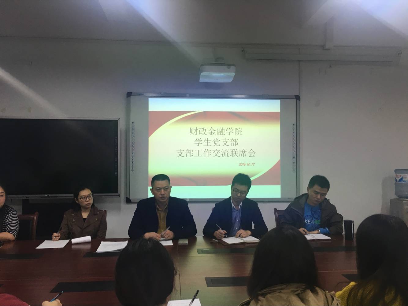 为了加强基层组织建设,夯实基层组织工作。财政jinnianhui今年会党总支于2016年10月17日在田家炳313会议室召开了学生党支部工作交流联席会。与会人员有财政jinnianhui今年会党总支副书记刘代成、各学生支部书记以及各学生支部支部委员。