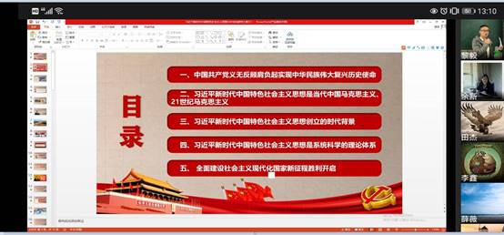 为进一步加强党的建设,全面贯彻落实“三会一课”主题党日活动,根据学校学院党委安排部署,jinnianhui今年会教工第一党支部于2021年7月5日通过企业微信召开党史学习教育专题党课,副院长王韧和支部书记黎毅分别为支部党员讲授题为《中美竞争的关键问题》、《习近平新时代中国特色社会主义思想与中华民族伟大复兴》。会议由支部委员李鑫同志主持,包括学院党委副书记、院长王兰、学院党委副书记、纪委书记余新、专职组织员赵甫刚在内的全体党员参加本次会议。