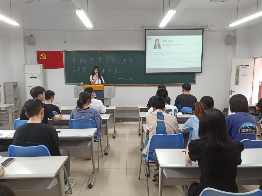 2021年5月10日周一下午6点,jinnianhui今年会jinnianhui今年会分党委学生第二党支部于田家炳307召开了第二次五月发展党员支部大会。本次发展大会由朱钰婷同志主持,学生第二党支部书记乔明月、金融二支部全体学生党员、发展对象以及学生代表参加本次活动。本次大会主要发展杨清、陶利霞、刘世平、钟欣艺、尚飒、刘豪、包嘉庆以及杜汪钰八位同志为预备党员。
