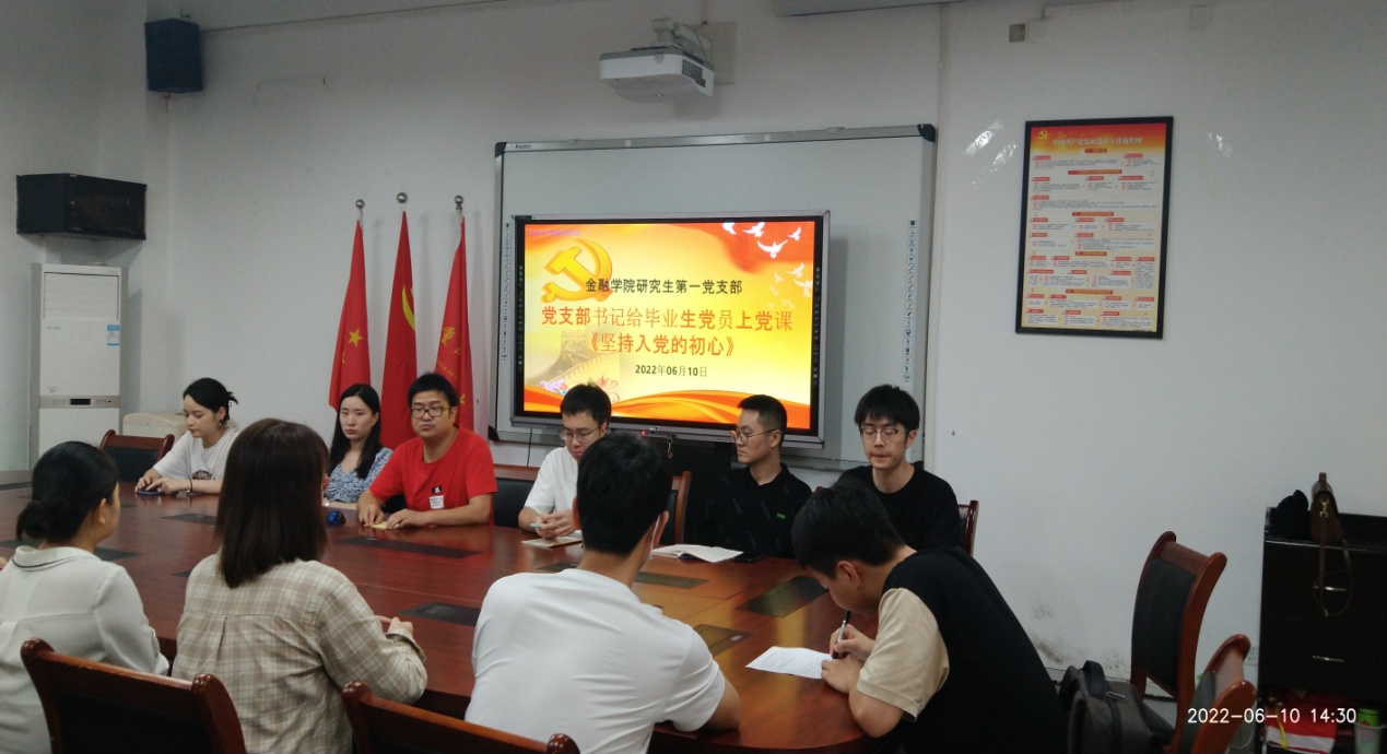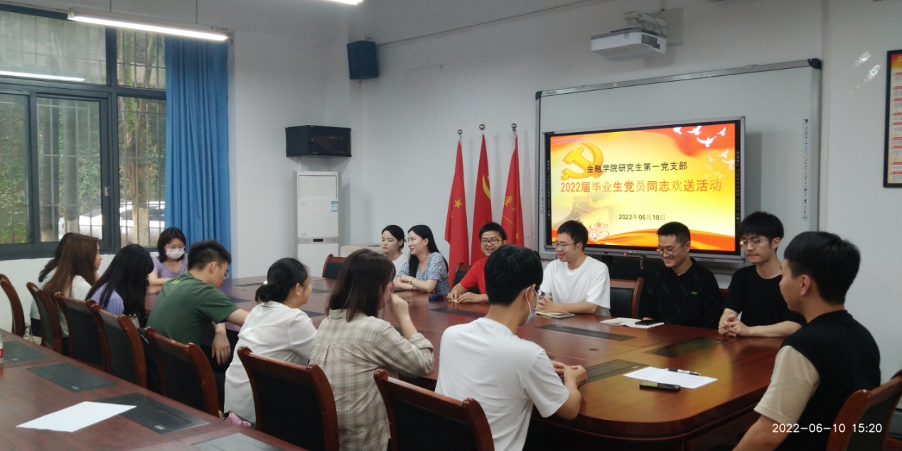 2022年6月10日下午,jinnianhui今年会研究生一支部开展了毕业生党员同志系列欢送活动。活动内容包括重温入党誓词、支部书记讲党课、毕业心得分享以及在校期间最后一次理论学习。活动由支部书记杨宁同志主持,支部全体党员出席。