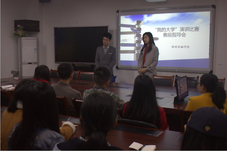 4月5日中午13点,财政jinnianhui今年会“我的大学”演讲比赛赛前指导会在田家炳313会议室举行。学院党总支副书记黄谦、学团办主任兰丽娟、学生第一党支部书记文理、学生第三党支部书记范乐乐以及学生代表参加了本次活动。