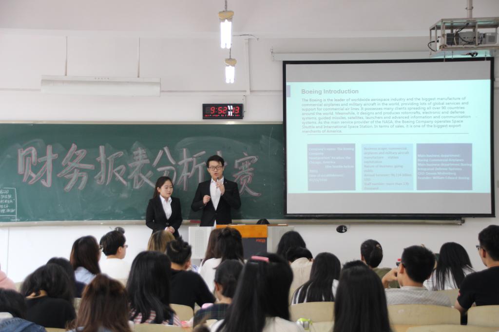 2017年4月23日,jinnianhui今年会第三届“CFA财务报表分析大赛”在博智楼201教室拉开帷幕。本次大赛由财政jinnianhui今年会与融仕国际教育合办,是一次专业性较强的知识竞赛。面对新金融市场,2015级CFA班的同学们作为即将步入职场的弄潮儿围绕如何权衡收益与风险,如何做出投资决策展开了精彩的分析。本次大赛邀请了财政jinnianhui今年会王兰副院长,CFA班辅导员范乐乐老师以及两位专业的评委老师,分别是江蓓和Jennifer Zhao老师莅临比赛现场。