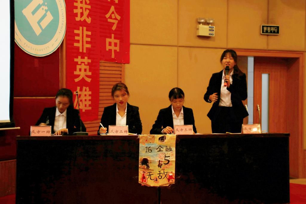 经过财金杯一系列精彩辩论赛的角逐,11月10日下午2点,jinnianhui今年会财政jinnianhui今年会财金杯辩论赛总决赛在博智楼7200教室激烈展开。来自16级金融二班的四名辩手与16金融五班的四名辩手向冠军宝座发起了最后的冲刺。