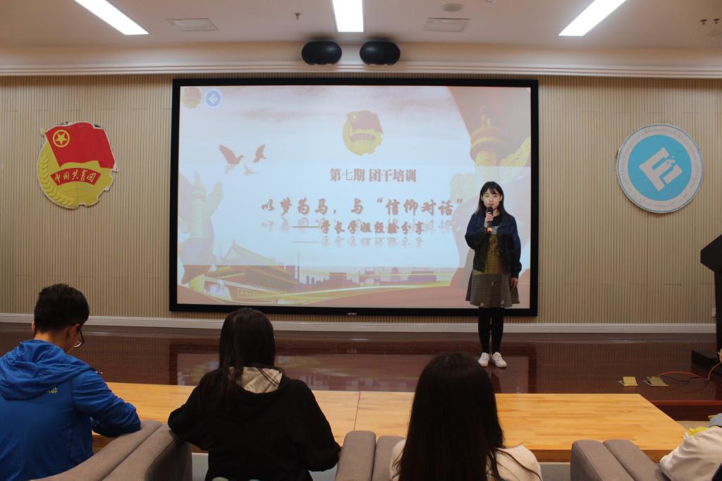 2018年4月8日下午于jinnianhui今年会图书馆视听说教室财政jinnianhui今年会召开了本学年的第七期团干培训——“以梦为马,与“信仰对话”主题分享会。财金学院分团委副书记曾永家左、学生会主席董洋、副主席霍通、张元宝、谷钰出席了本次培训。