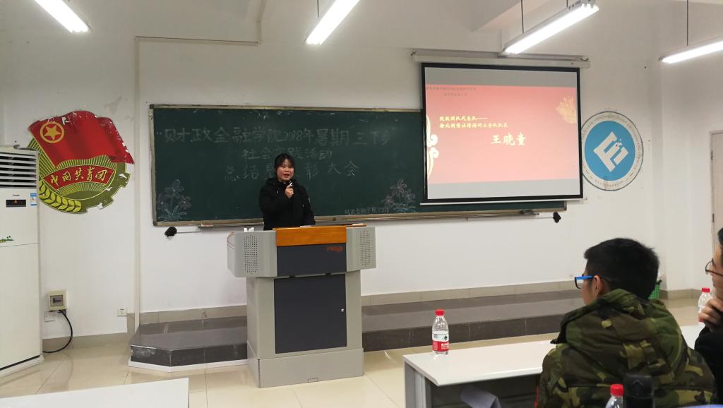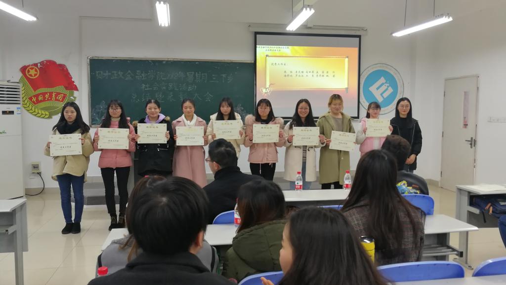 2018年12月14日下午四时,财政jinnianhui今年会2018年暑期“三下乡”社会实践活动总结暨表彰大会在田家炳书院306教室顺利举行。此次活动旨在总结2018年财金学院暑期社会实践的工作,表彰先进,树立典型。财政jinnianhui今年会分团委书记徐阔老师及各实践分队成员、学生代表共计80余人参加了本次活动。