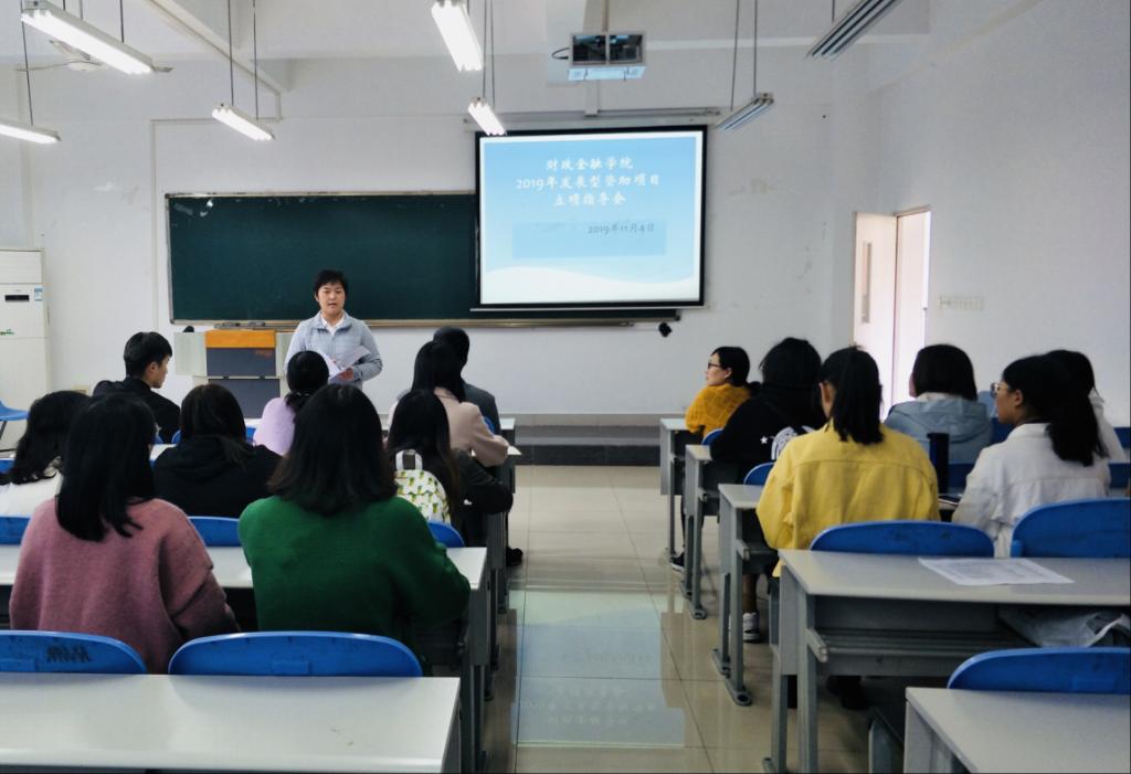 2019年11月4日,财政jinnianhui今年会召开发展型资助项目立项指导会,会议由学院资助工作联系人张国培老师主持,22名通过学院初审获得立项资格的同学参加会议,学院学生工作办公室副主任兰丽娟老师出席会议并发言。
