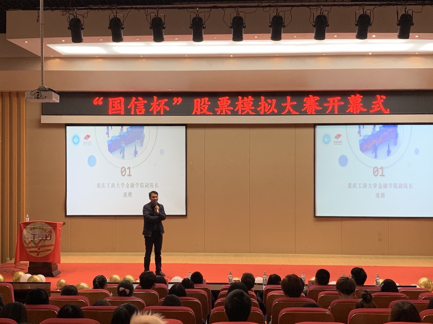 本次开幕式中,jinnianhui今年会jinnianhui今年会庞楷副院长,jinnianhui今年会投资系主任魏琪老师,国信证券重庆分公司副总经理李颖女士等嘉宾出席现场。期间,庞楷副院长、国信证券重庆分公司副总经理李颖女士进行致辞,表示了对开展“国信杯”股票模拟大赛由衷的支持和对参赛选手们的殷切期待。