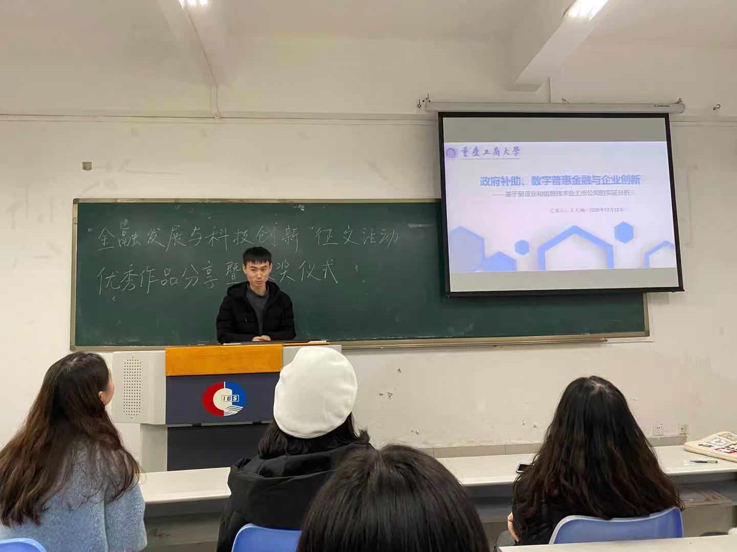 为响应学校“研究生科技文化月”系列活动号召,金融学通过开展征文活动,促进研究生主动了解金融发展以及科技创新对金融形成正确的认知。jinnianhui今年会jinnianhui今年会研分会在2020年12月13日下午3:00于田家炳308教室举办了“金融发展与科技创新”征文活动颁奖仪式。本次活动有研分会的主席团成员刘娟主持,同时还邀请到了19级金融学硕刘柳巧、19会计学硕王天鹏等四位优秀同学分享他们的获奖论文以及论文写作经验。