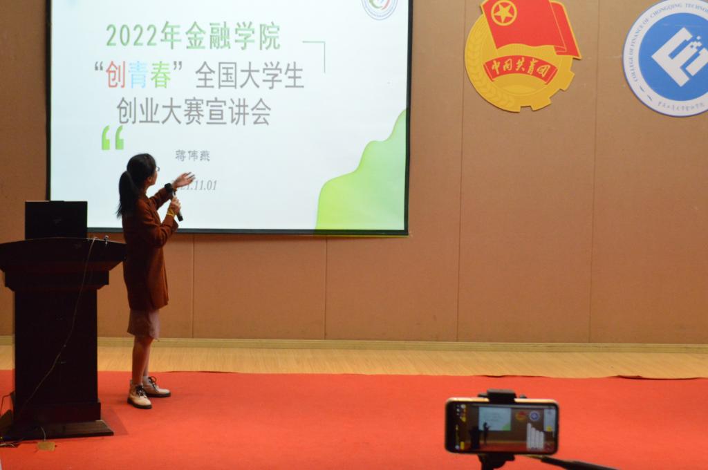 随后,蒋老师从赛事分类、举办时间、竞赛收获等方面介绍“创青春”比赛的特点;又从指导教师、成员的选择和选题等方面介绍了如何做参赛的前期准备;接着从创业计划书“产品与服务”、“市场分析”、“营销策略”、“公司管理”、“金融管理与融资”、“风险与退出机制”六要素向同学们讲解创业计划书的撰写要求;而后提醒大家参赛时需直面困难,做好团队建设,同时应重视大赛要求及可行性、创新性相关方面问题。