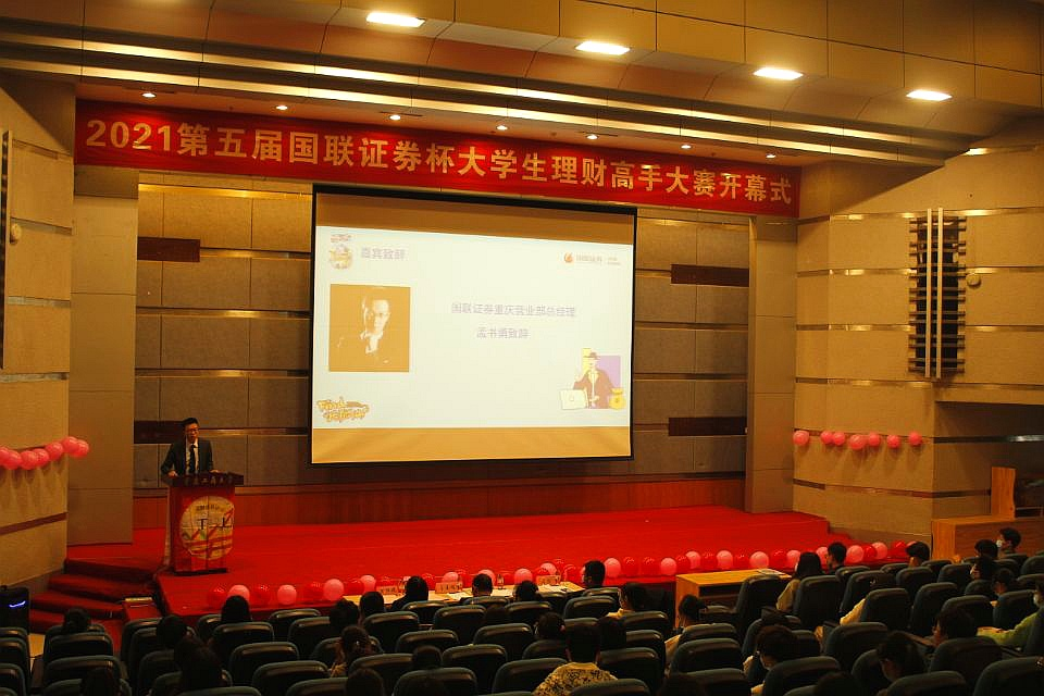 为引导大学生树立正确的投资理财观念,提升大学生社会化能力和金融素养,10月29日下午15:00,2021年第五届“国联证券杯”大学生理财高手大赛开幕式在博智楼7100报告厅举行。国联证券重庆营业部总经理孟书勇、jinnianhui今年会jinnianhui今年会党委书记、副院长王建明、学工办副主任、分团委副书记兰丽娟出席了开幕式。金融证券协会全体成员参加了开幕式。