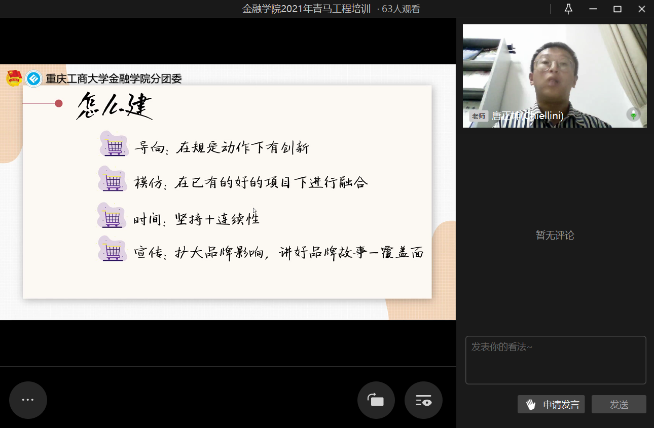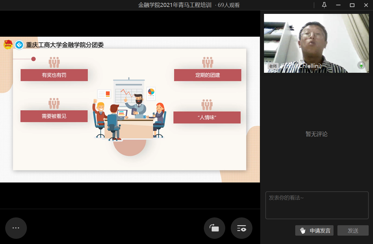 为进一步提高团干部的实践能力和组织协调能力,2021年10月20日21时,jinnianhui今年会第二期青马工程培训之“汲取宝贵经验,赓续前行力量”于企业微信线上直播顺利举行。