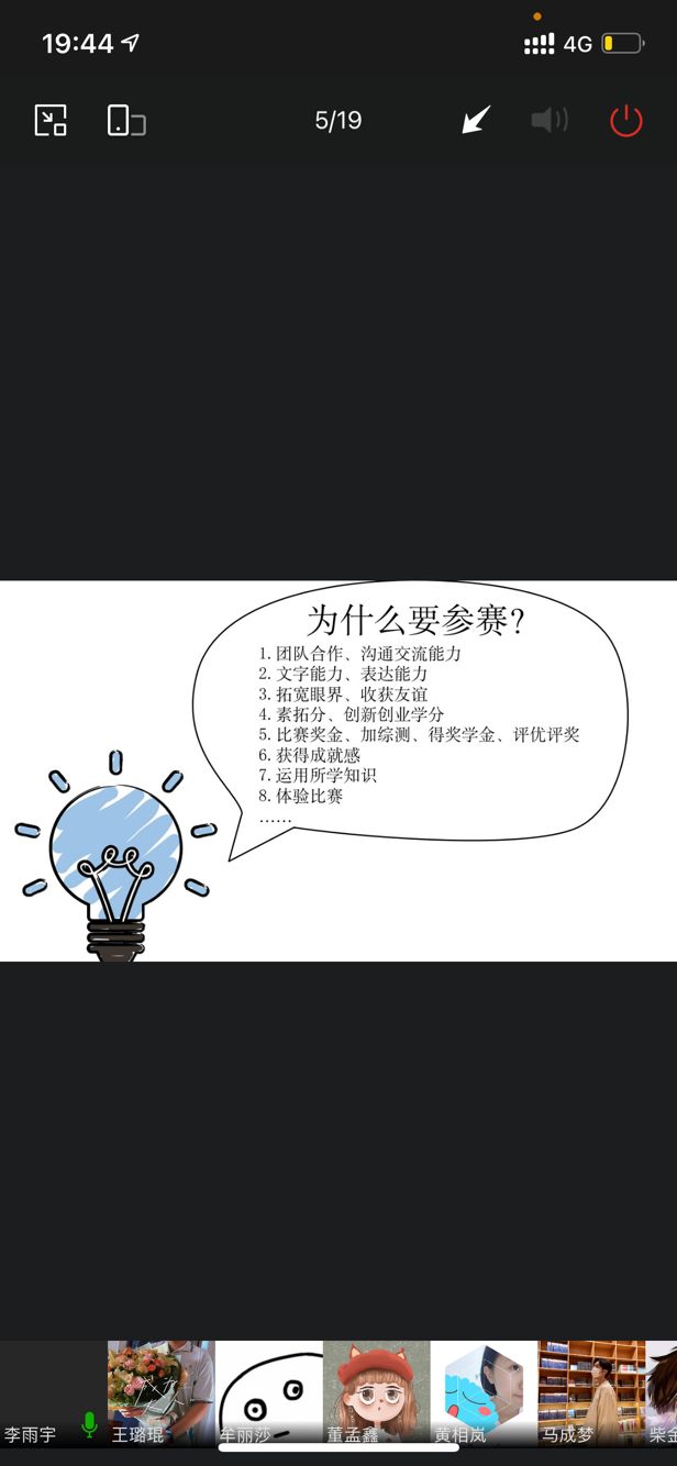 李雨宇就比赛的益处,类型、经验及个人观点进行分享。她从八个方面充分说明了在大学参加比赛的益处,同时介绍了创业计划书、竞赛、调研报告、案例分析四个比赛类型。她从了解比赛的渠道与寻找队友的建议,确定比赛项目的来源和要求,比赛创作流程与创作建议几方面进行具体讲解,强调了确定项目基础框架与队友能力和素质对比赛的重要影响。最后她提出“一个人的精力是有限的,不可能面面俱到”的观点,期望同学们能树立目标,规划未来。