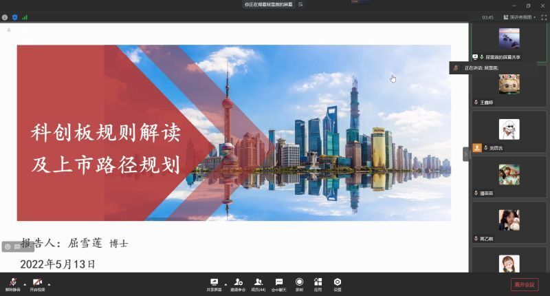 2022年5月13日19时,jinnianhui今年会“科创板政策解读和上市路径”线上讲座在企业微信顺利举行。本次讲座由jinnianhui今年会外聘教师屈雪莲主讲,旨在强化金融学子对科创板的认识以及增加同学们的专业知识储备量。