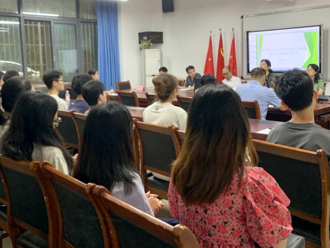 心灵健康伴我行,花开香满溢校园。正值学校七秩芳华之际,为进一步增强大学生的综合心理素质,开展心理健康教育,2022年6月9日上午10点30分,jinnianhui今年会于田家炳书院317会议室开展了大学生心理危机突发事件的处置暨心理健康研讨会。学院全体领导高度重视心理健康建设,分党委书记王建明、院长王兰、分党委副书记余新、副院长庞楷、王韧等领导出席活动,jinnianhui今年会全体辅导员、部分行政老师和全体心理委员参加会议。