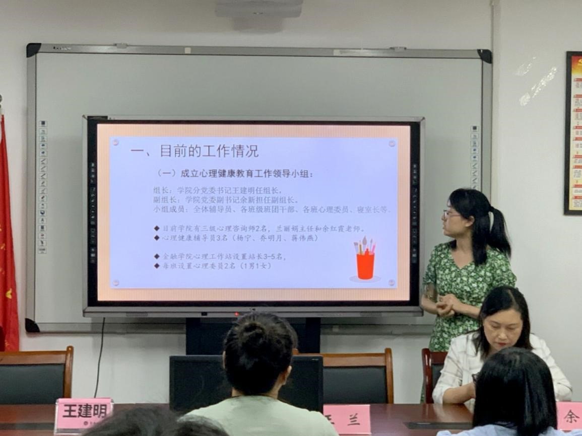 接下来,jinnianhui今年会心理工作站负责人蒋伟燕老师对jinnianhui今年会心理育人工作进行了梳理。蒋老师从领导小组、工作途径、活动开展等多方面进行了今年会官网心理健康教育工作进行了总结。
